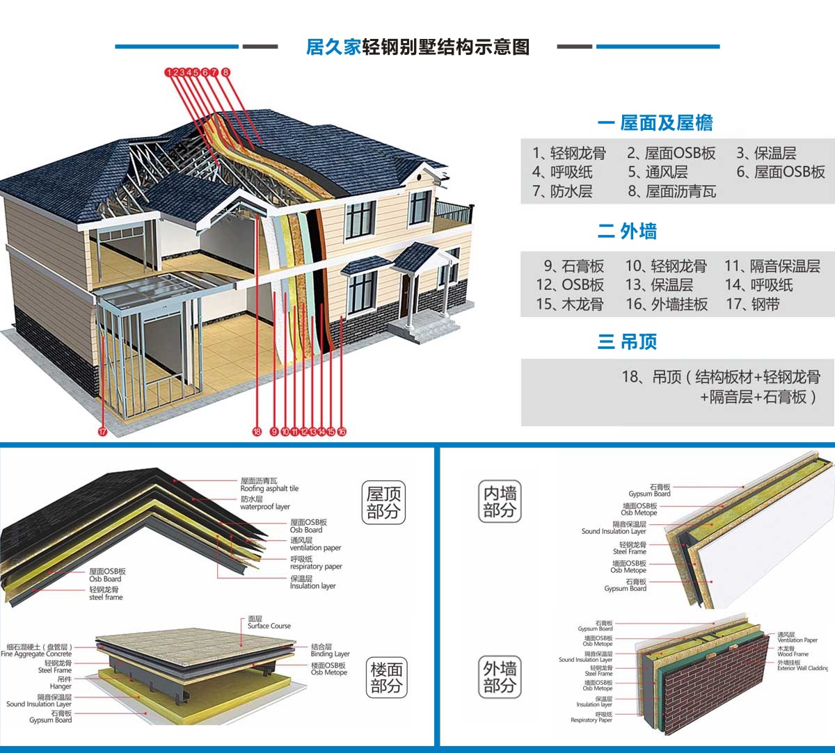 居久家輕鋼別墅隸屬于四川萬建城建筑工程有限公司,集科研、設(shè)計(jì)、咨詢、加工、生產(chǎn)安裝為一體。一直致力于新型輕鋼結(jié)構(gòu)房屋的研究、開發(fā)和應(yīng)用,倡導(dǎo)房屋建筑的設(shè)計(jì)和應(yīng)用在標(biāo)準(zhǔn)化、模塊化、通用化、規(guī)模化生產(chǎn)的同時(shí),實(shí)現(xiàn)人居環(huán)境的個(gè)性化、人性化、以及健康和舒適。 公司目前引進(jìn)具有國內(nèi)先進(jìn)水平輕鋼結(jié)構(gòu)房屋建筑技術(shù)和生產(chǎn)線,標(biāo)準(zhǔn)化、精細(xì)化和定制化設(shè)計(jì)、制造、安裝輕鋼結(jié)構(gòu)房屋。不僅能夠提供風(fēng)格各異的別墅建筑,同樣能夠提供行業(yè)標(biāo)準(zhǔn)的輕鋼樓宇建筑及建筑群。居久家裝配式房屋技術(shù)體系是高效節(jié)能型綠色建筑體系,各項(xiàng)建筑物理性能卓越,處于業(yè)內(nèi)先進(jìn)水平,能夠?yàn)榭蛻籼峁┤棠K化綠色建筑集成解決方案。